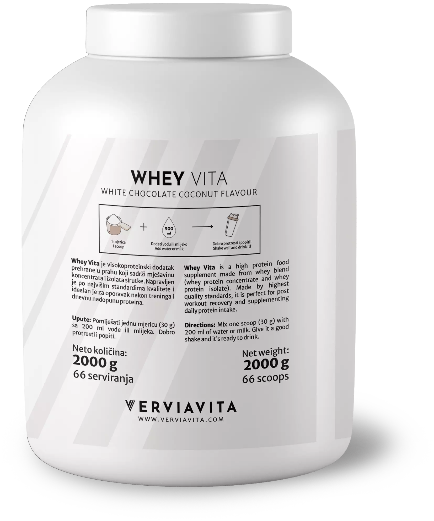 Whey Vita is a high quality whey protein concentrate for muscle development and recovery with rapid absorption technology. Whey protein powder offers a wealth of benefits, making it a favorite among fitness enthusiasts. It’s a quick and convenient way to boost daily protein intake, aiding muscle recovery and growth. Additionally, whey protein is easily digestible and contains essential amino acids, contributing to improved overall health and immune function.