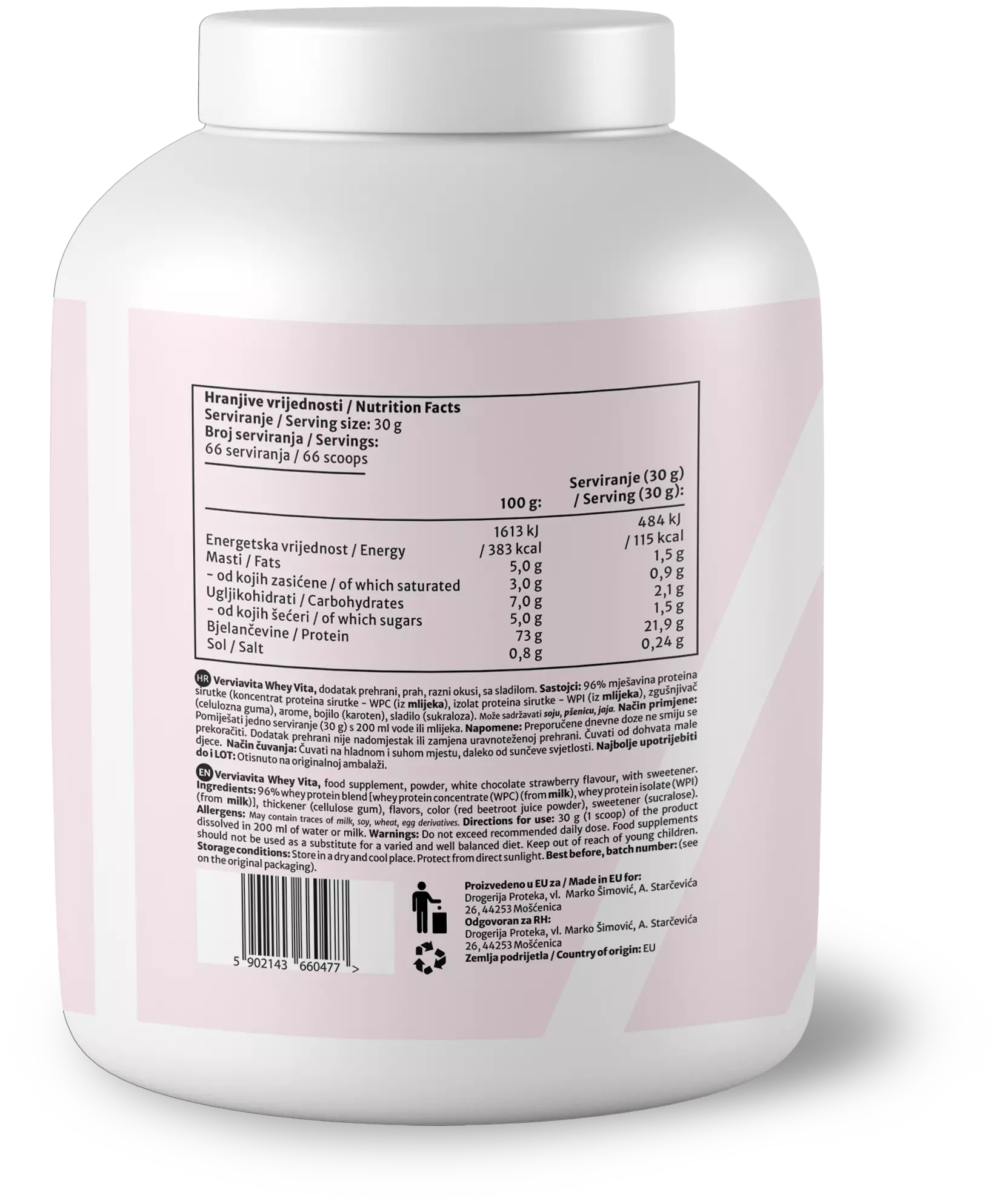 Whey Vita is a high quality whey protein concentrate for muscle development and recovery with rapid absorption technology. Whey protein powder offers a wealth of benefits, making it a favorite among fitness enthusiasts. It’s a quick and convenient way to boost daily protein intake, aiding muscle recovery and growth. Additionally, whey protein is easily digestible and contains essential amino acids, contributing to improved overall health and immune function.